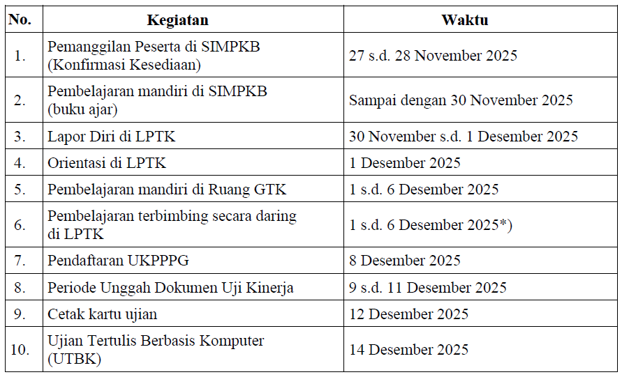 PENGUMUMAN ORIENTASI AKADEMIK PPG DALAM JABATAN TAHAP 1 Bersama ini kami umumkan bagi Peserta PPG Dalam Jabatan Tahap yang telah mengikuti Tahapan Lapor Diri untuk Kegiatan Orientasi Akademik akan diselenggarakan pada : Hari/Tanggal : Senin, 27 Agustus 2018 Waktu : Pukul 07.30 WIB s.d Selesai Tempat …